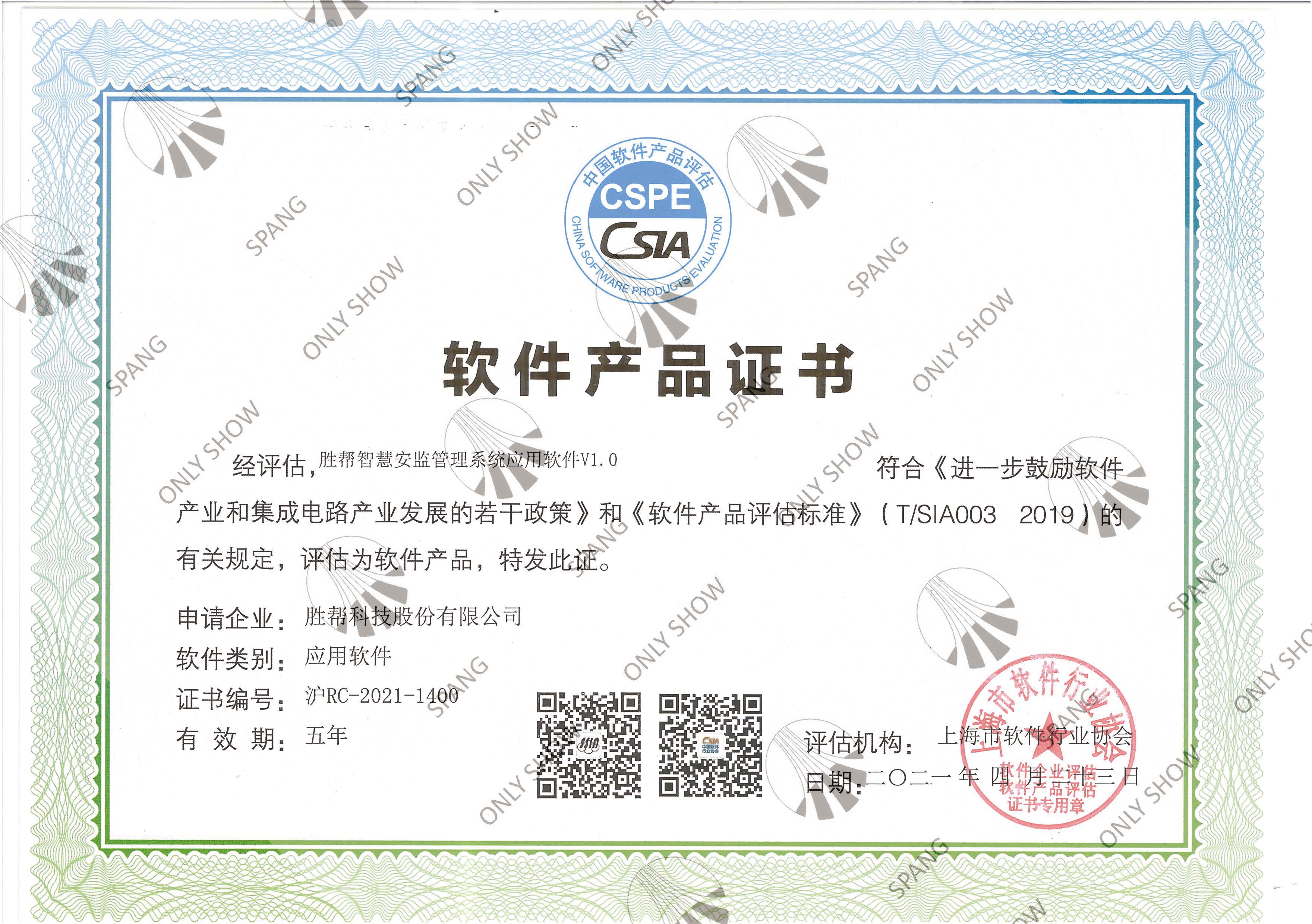智慧安监管理系统应用软件产品证书