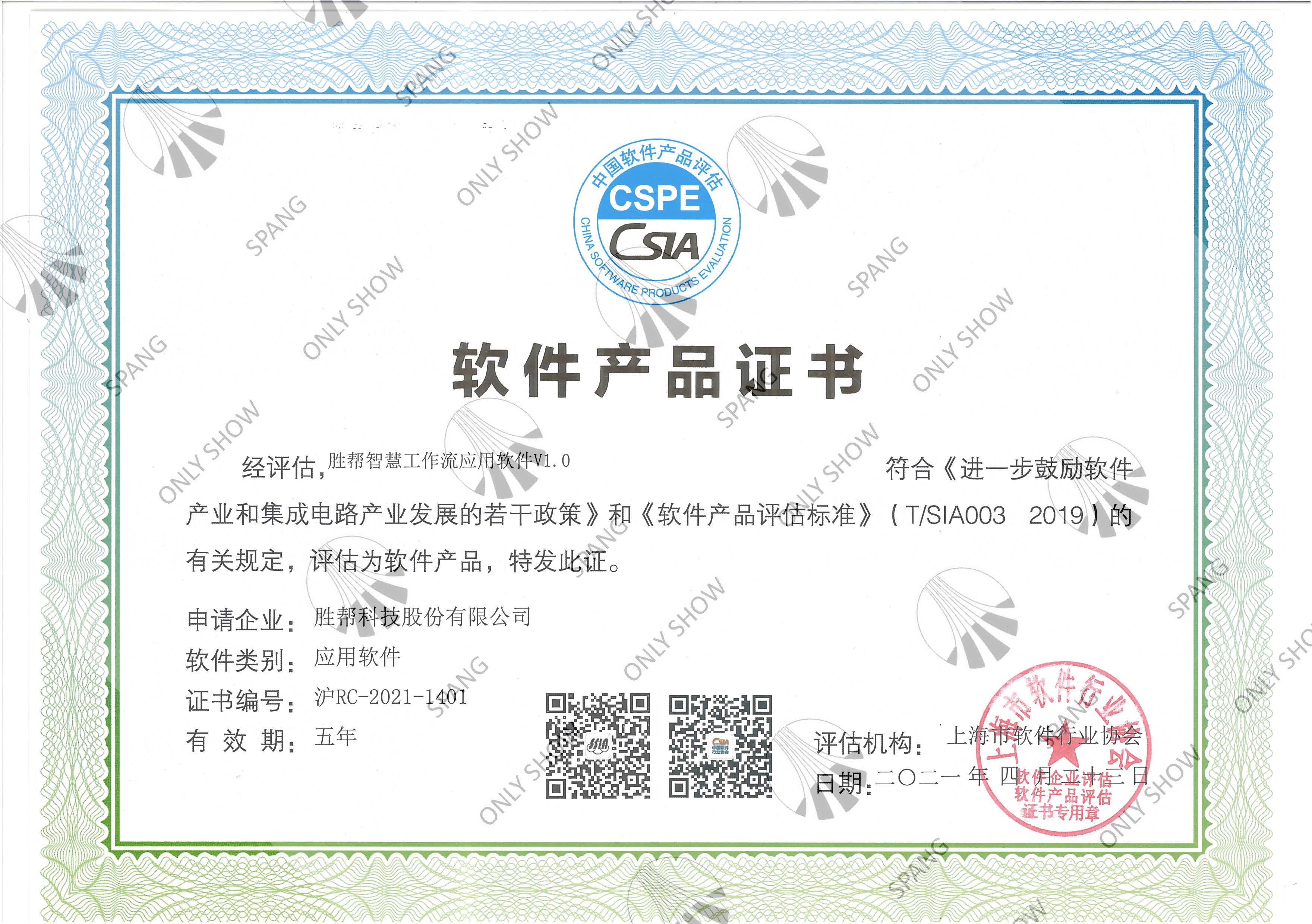 智慧工作流应用软件产品证书