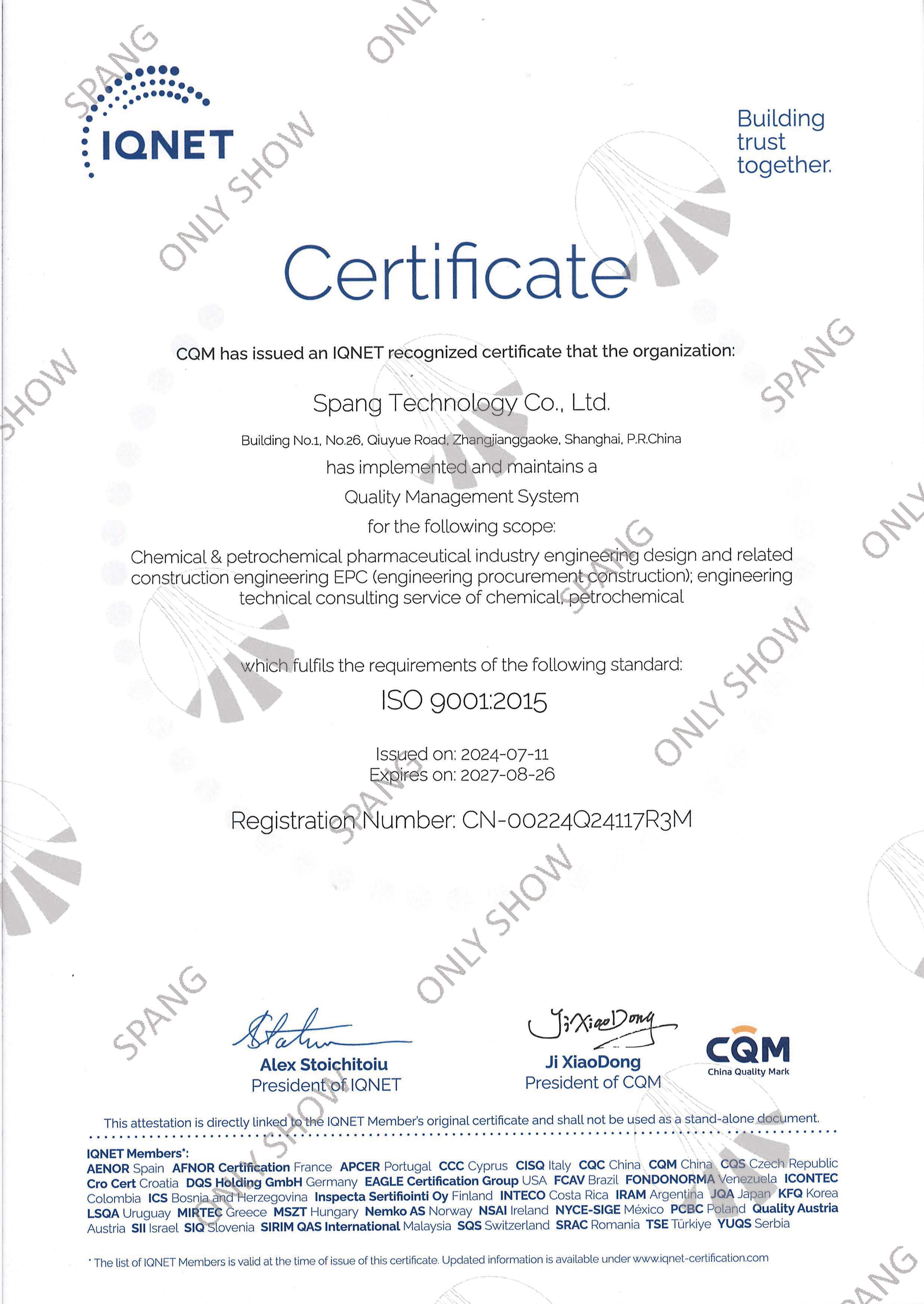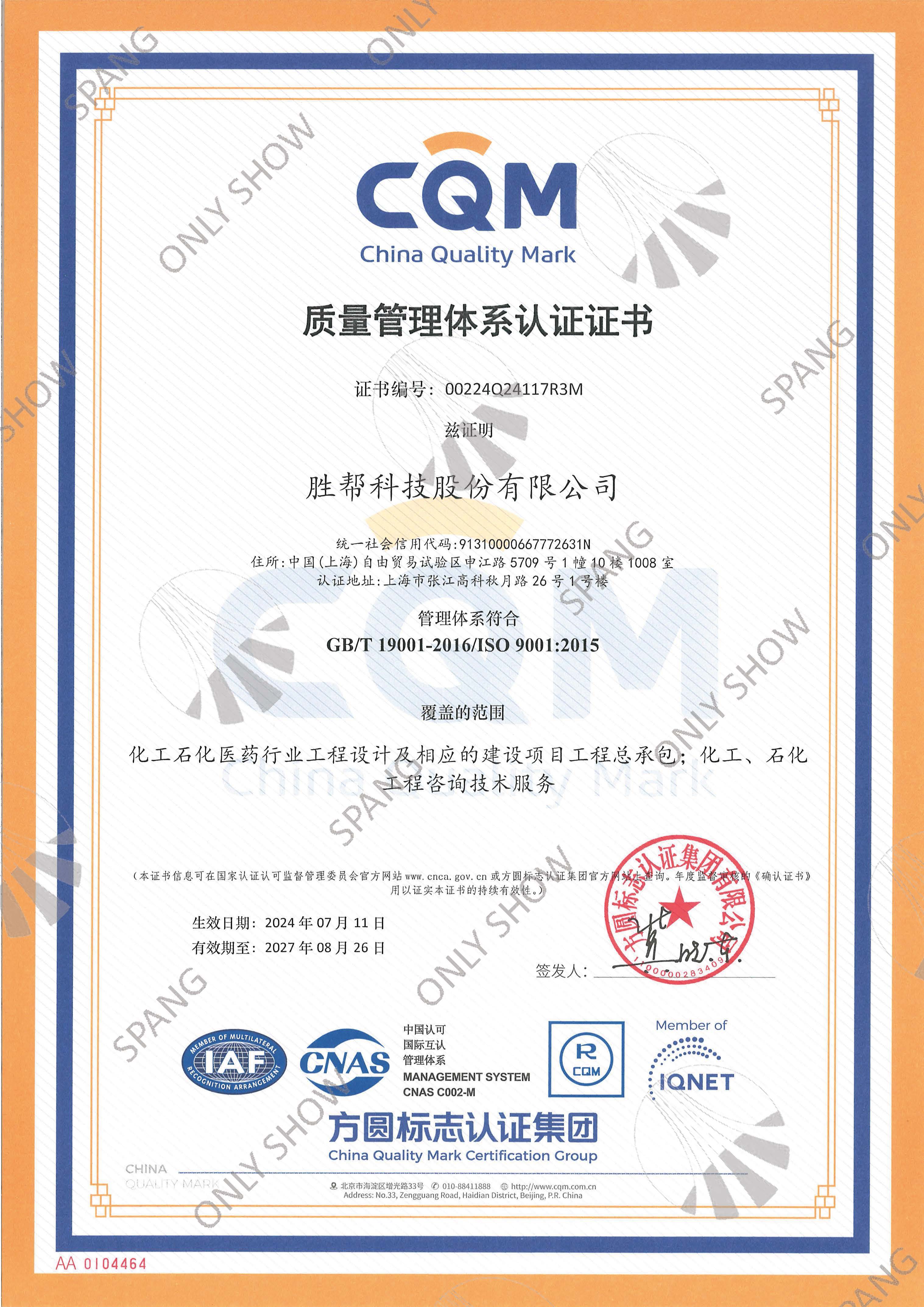 质量管理体系证书(英文版)