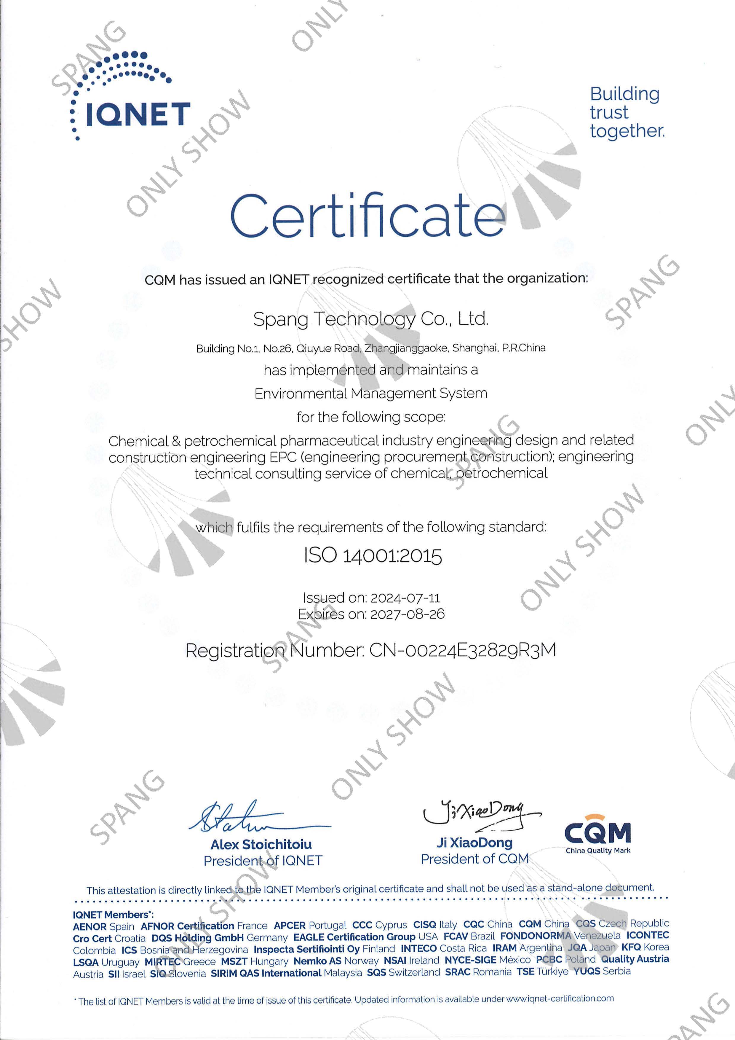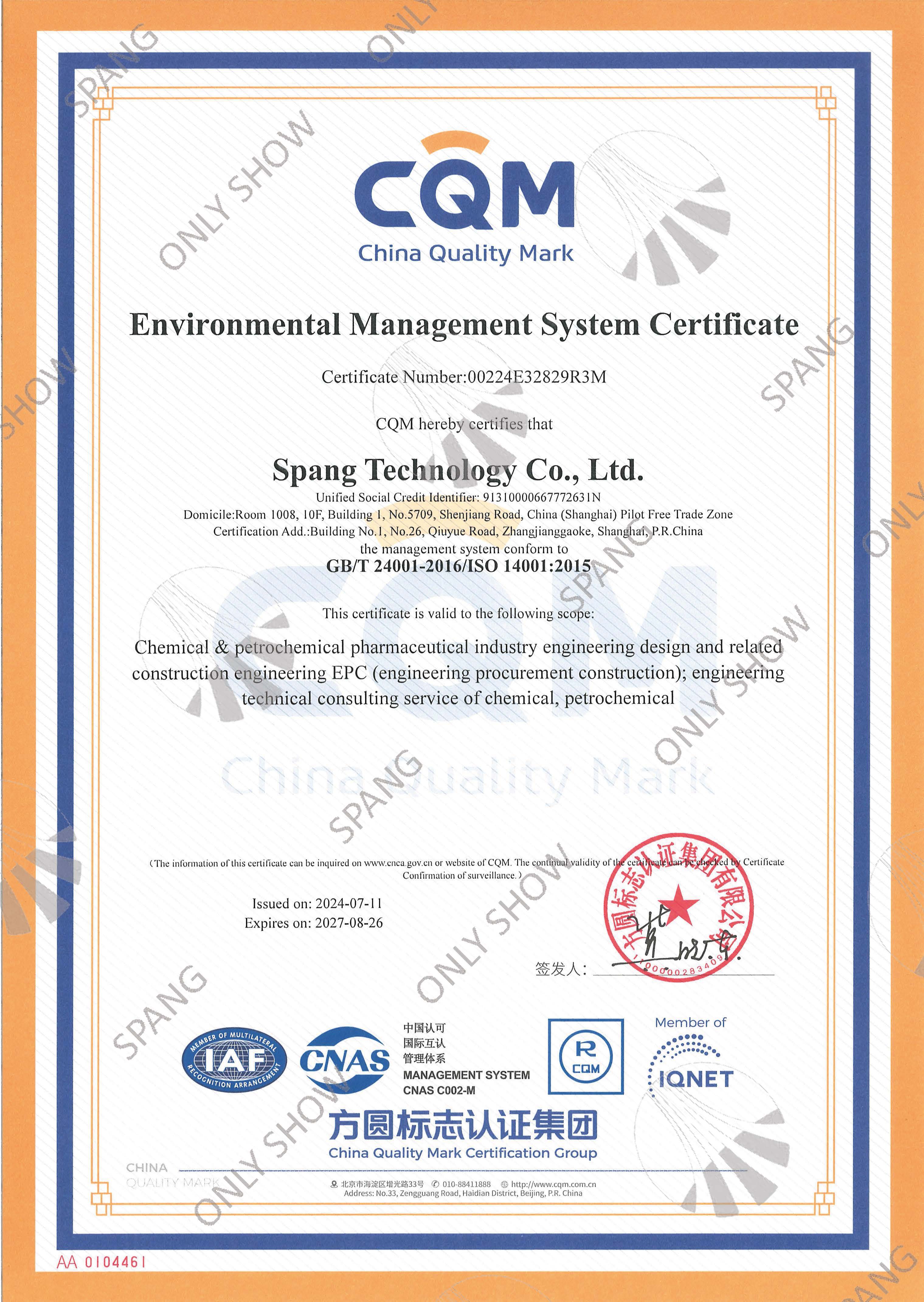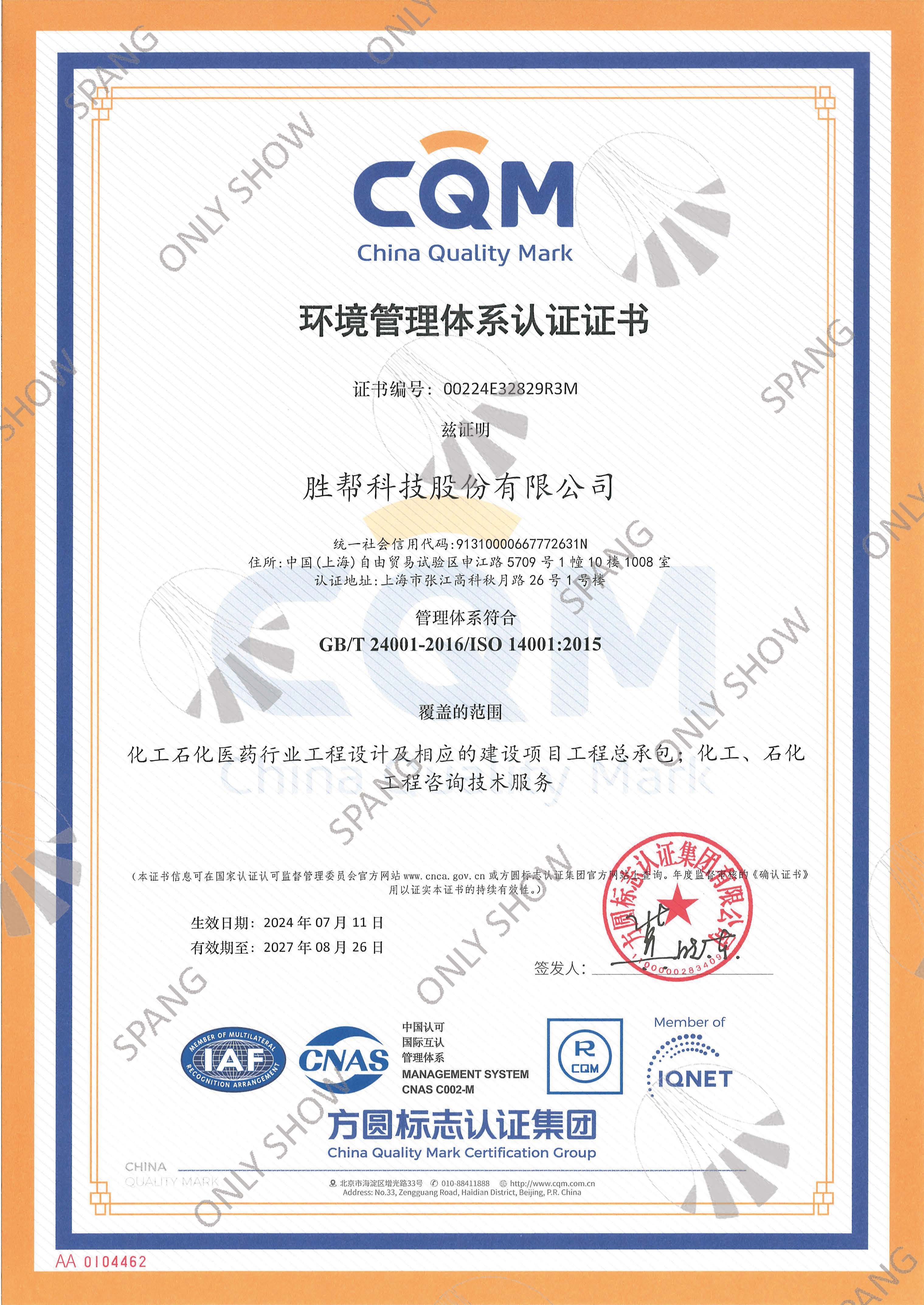 环境管理体系证书(英文版)