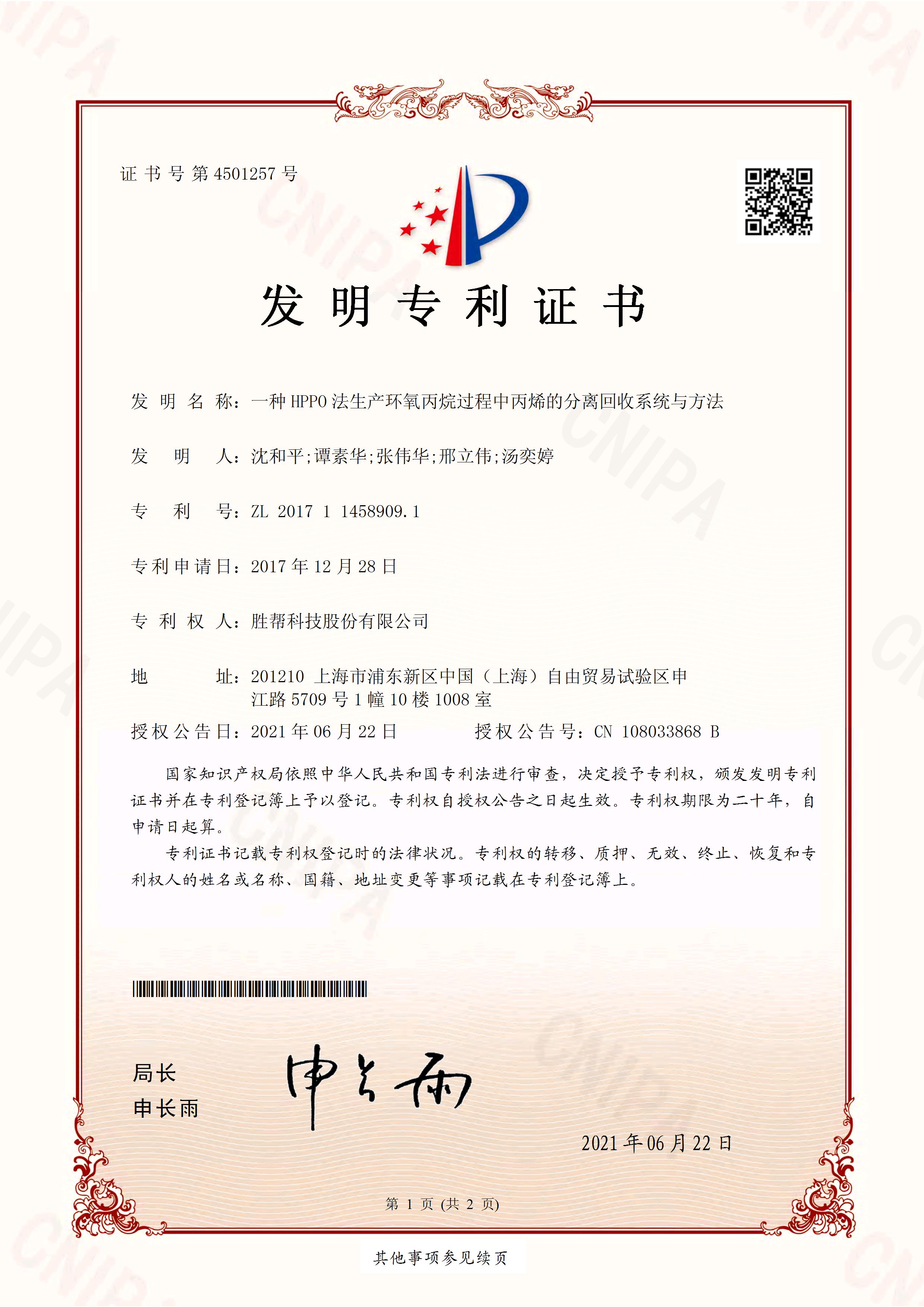一种HPPO法生产环氧丙烷过程中丙烯的分离回收系统与方法